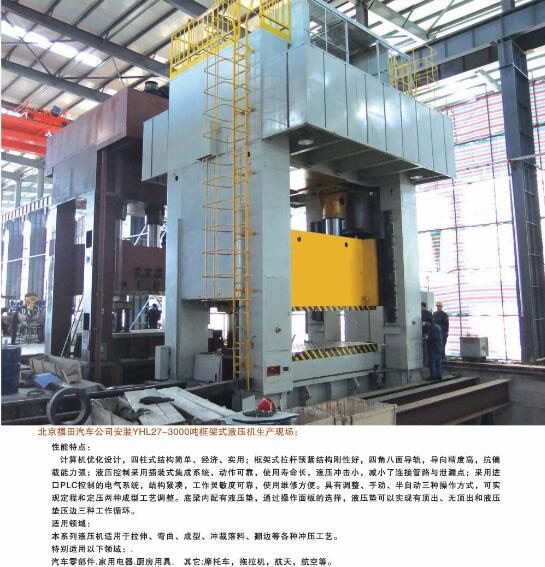 公司能夠?yàn)槭袌鎏峁?2大類500余個(gè)品種的標(biāo)準(zhǔn)液壓機(jī)和非標(biāo)專用、精密伺服液壓機(jī)。產(chǎn)品廣泛應(yīng)用于汽車、航天、粉末冶金、船舶、輕工、建筑、電子、家用電器等行業(yè),并代表著我國通用液壓機(jī)的發(fā)展水平。公司生產(chǎn)、設(shè)計(jì)、開發(fā)的液壓機(jī)產(chǎn)品完全能夠滿足國內(nèi)不同用戶多層次的需要。